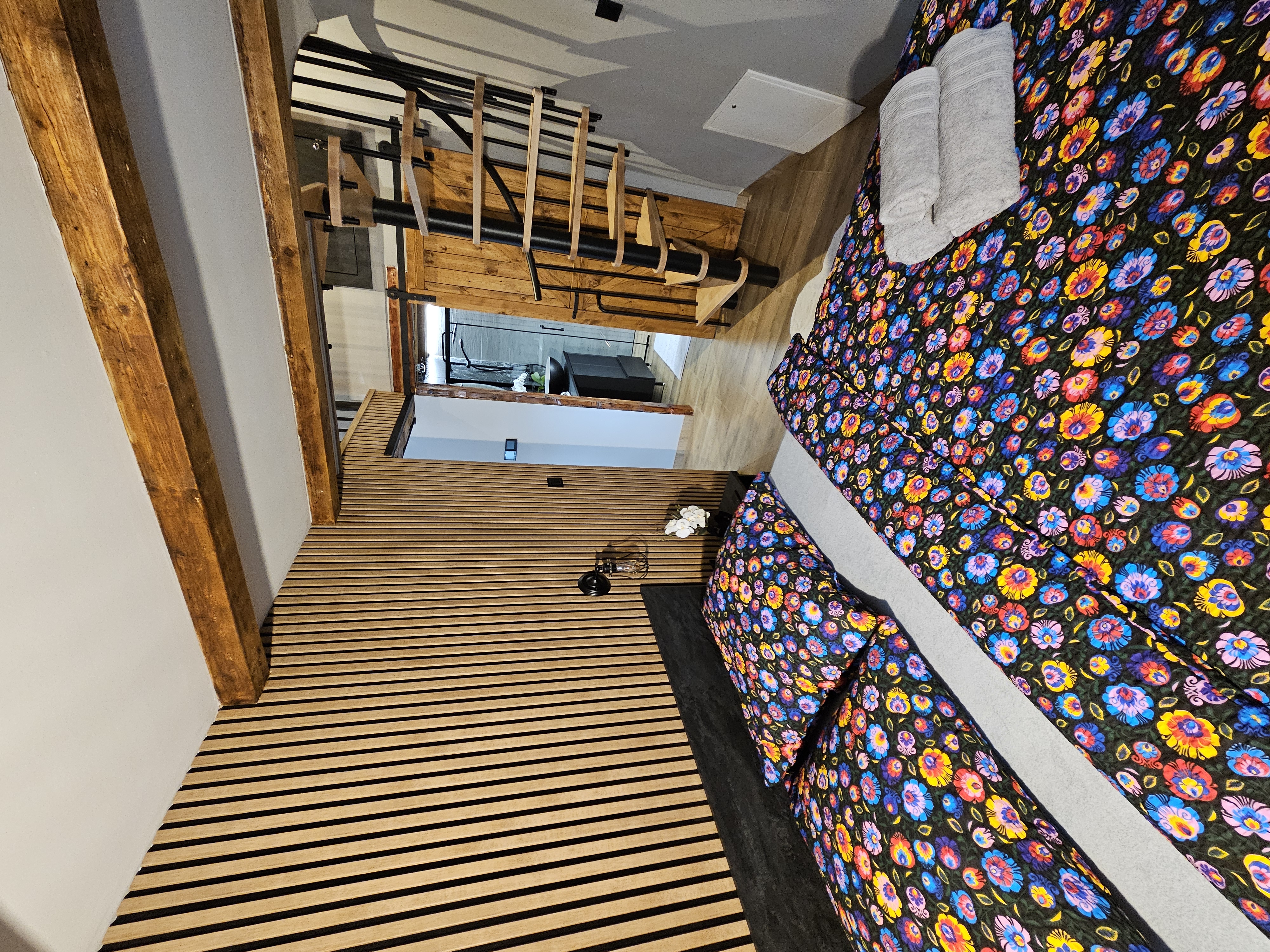 W pokoju możemy przyjąć od 2 do 4 osób, w którym znajduje się łóżko małżeńskie, łóżko klasyczne i rozkładany wygodny fotel. Bezpośrednio dostęp do aneksu kuchennego, prywatna łazienka, oraz TV led.